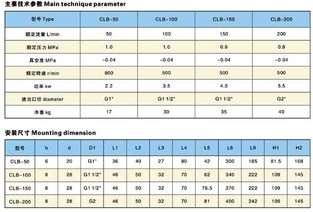 CLB型沥青泵为旋转式,主要由泵体、机座、主动齿轮、从动齿轮和 阀体等组成。主动轴由一个附加的含油轴套支撑,通过油杯补充HG-24号饱和汽缸油润滑。泵的两侧装有带圆锥管螺纹的连接头以便连接进口管道位,该圆锥销制有内螺纹以便于拆卸。其密封纸垫还用以调整齿轮的轴向间隙,该间隙规定为单向在0.05-0.08mm之间。